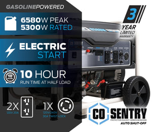 Pulsar PG6580ECO 6,580-Watt Gasoline Powered Generator with CO Shutdown Sensor - PowerGen USA