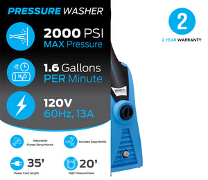Pulsar PWE2001V 2,000 PSI 1.6 GPM Electric Pressure Washer with Soap Bottle - PowerGen USA