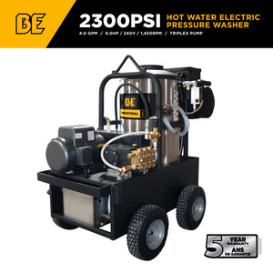 BE POWER EQUIPMENT 2,300 PSI 4.0 GPM Hot Water Electric Pressure Washer with General Triplex Pump - 15-423