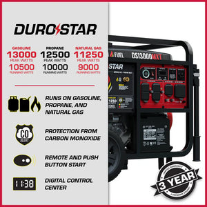 DuroMax DS13000MXT 13,000-Watt/10,500-Watt 500cc Portable Tri Fuel Portable Generator w/ CO Alert - PowerGen USA