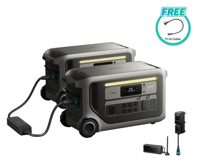 2x Anker SOLIX F3000 Portable Power Station + Double Power Hub + Power Saver Kit - 6144 Watt Hours - Includes FREE TT-30 Cable