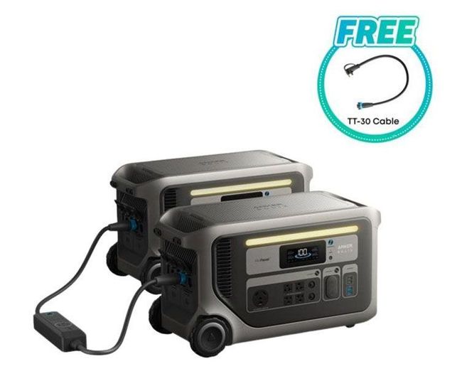 2xAnker SOLIX F3000 Power Station Kit - 6144Wh Total Capacity + Double Voltage Hub - Includes FREE TT-30 Cable