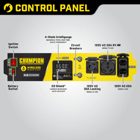 Monitors voltage, frequency and operating hours, plus features CO Shield® carbon monoxide auto shutoff system