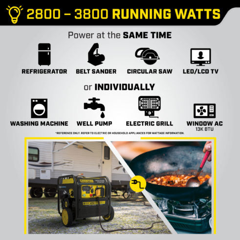 Enjoy a quiet 64 dBA when RVing or tailgating and run up to 22 hours with 4250 starting and 3500 running watts on gasoline