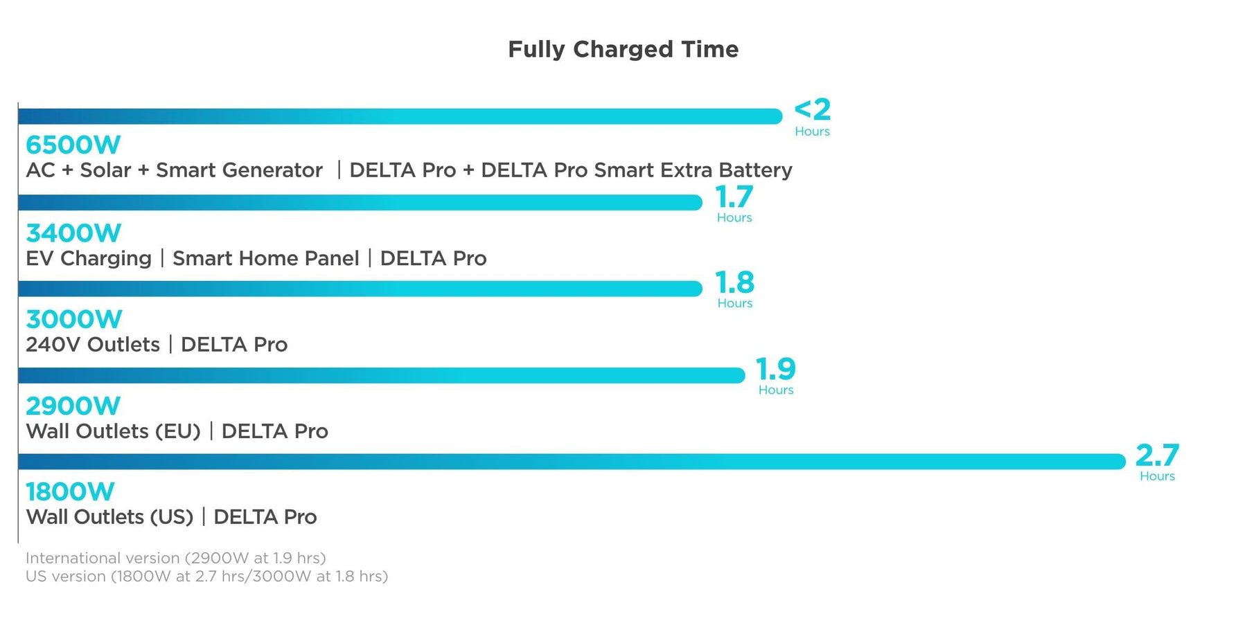 *International version (2900W at 1.9 hrs) US version (1800W at 2.7 hrs/3000W at 1.8 hrs)