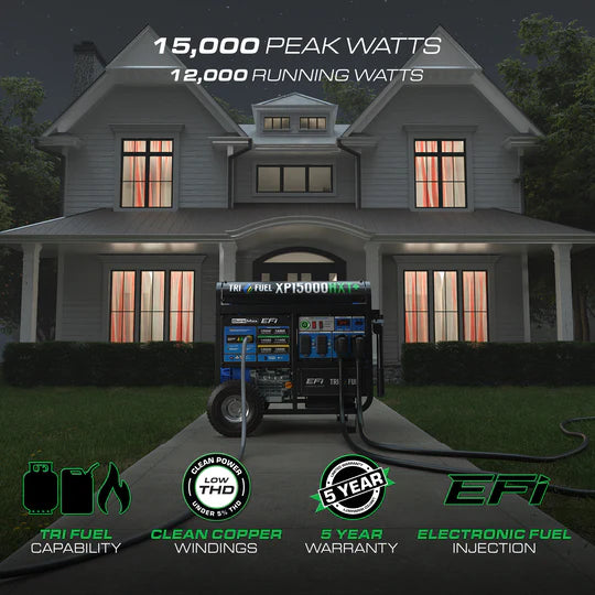 DuroMax XP15000HXT+ 15,000-Watt/12,000-Watt 500cc Electric Start TriFuel EFI Portable Generator - PowerGen USA