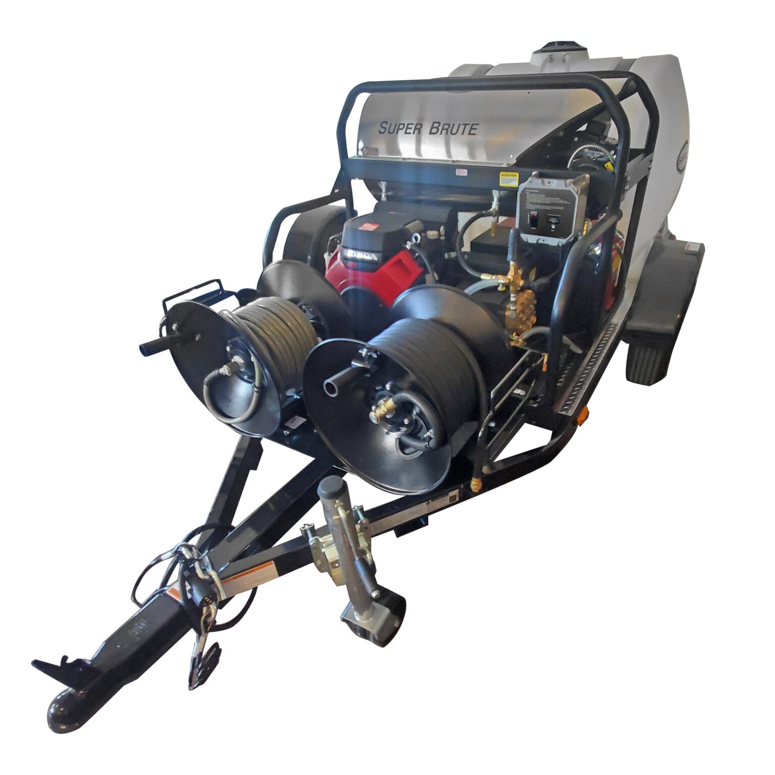 This powerful SIMPSON® hot water mobile pressure washing system will handle all your commercial jobs. It is perfectly suited for contract cleaners, mobile detailers, municipalities, and resorts. The trailer is dot certified as an over-the-road pressure washer system. Job-Site set-up is a snap. Pull up to the work area, connect the spray gun, start the engine, and begin cleaning. Equipped with a (49-State compliant) HONDA® engine with an electric start and reliable General triplex pump.