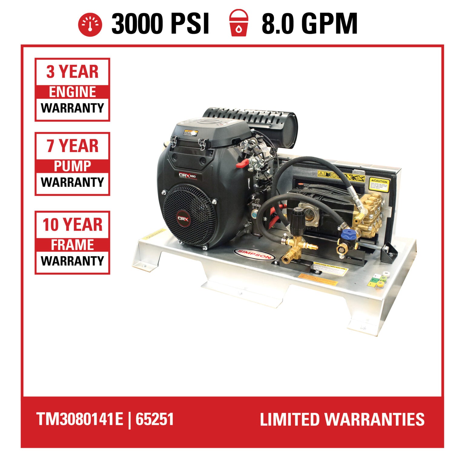 SIMPSON Truck Mount Series TM3080141E 3000 PSI at 8.0 GPM CRX® 680 with UDOR® Triplex Plunger Pump Cold Water Gas Industrial Pressure Washer- PowerGen USA