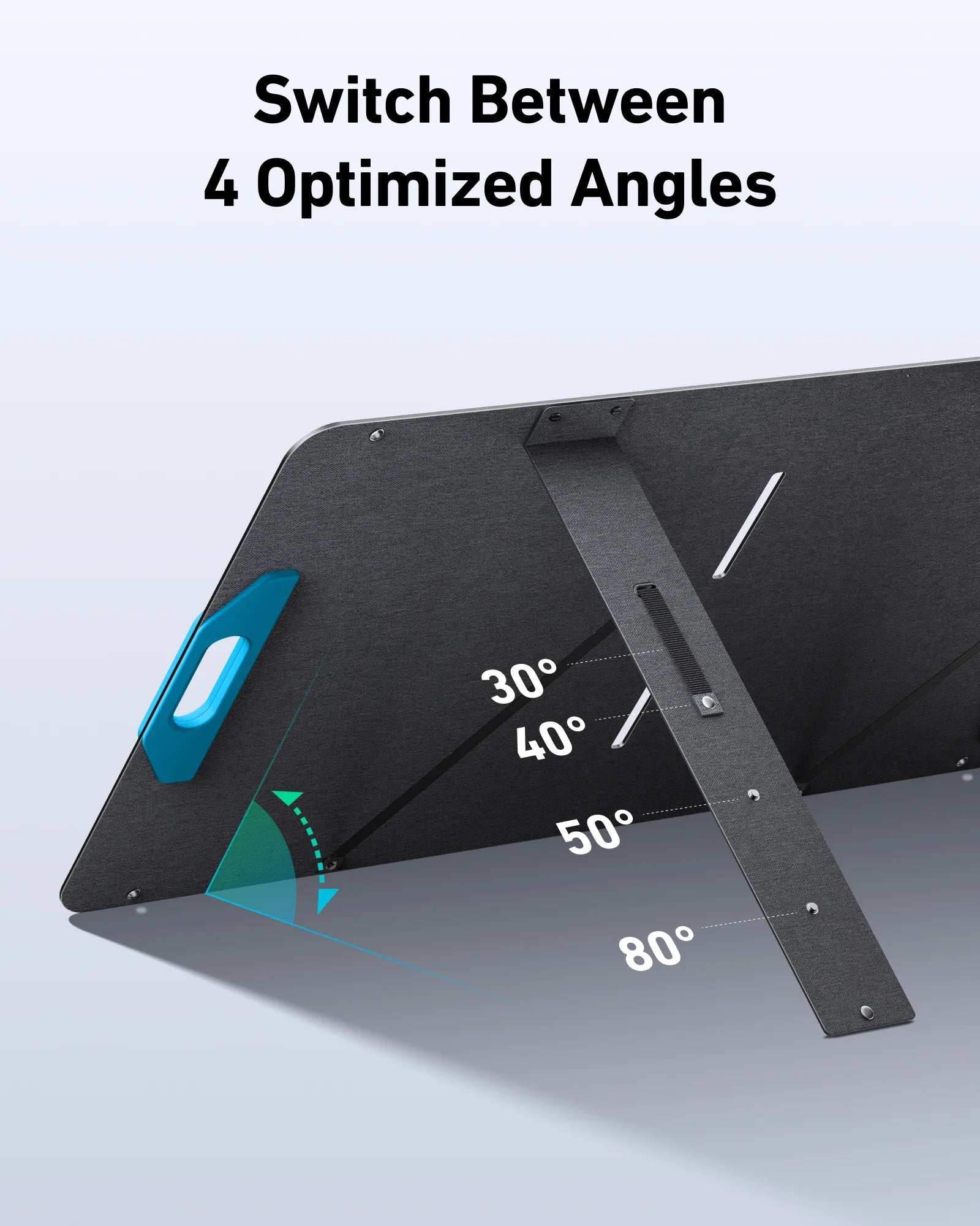 The Anker SOLIX PS100 Portable Solar Panel is designed for reliable and efficient solar energy conversion, making it the perfect companion for outdoor adventures, RV trips, and emergency backup power. With up to 23% conversion efficiency, this solar panel maximizes energy absorption, even on cloudy days. Its adjustable tilt angles (30°, 40°, 50°, and 80°) ensure optimal sunlight exposure throughout the day. Compatible with PowerHouse 521, 535, and 757, the PS100 delivers seamless power on the go. Built with scratch and weather-resistant materials, this solar panel is designed for durability in any environment.