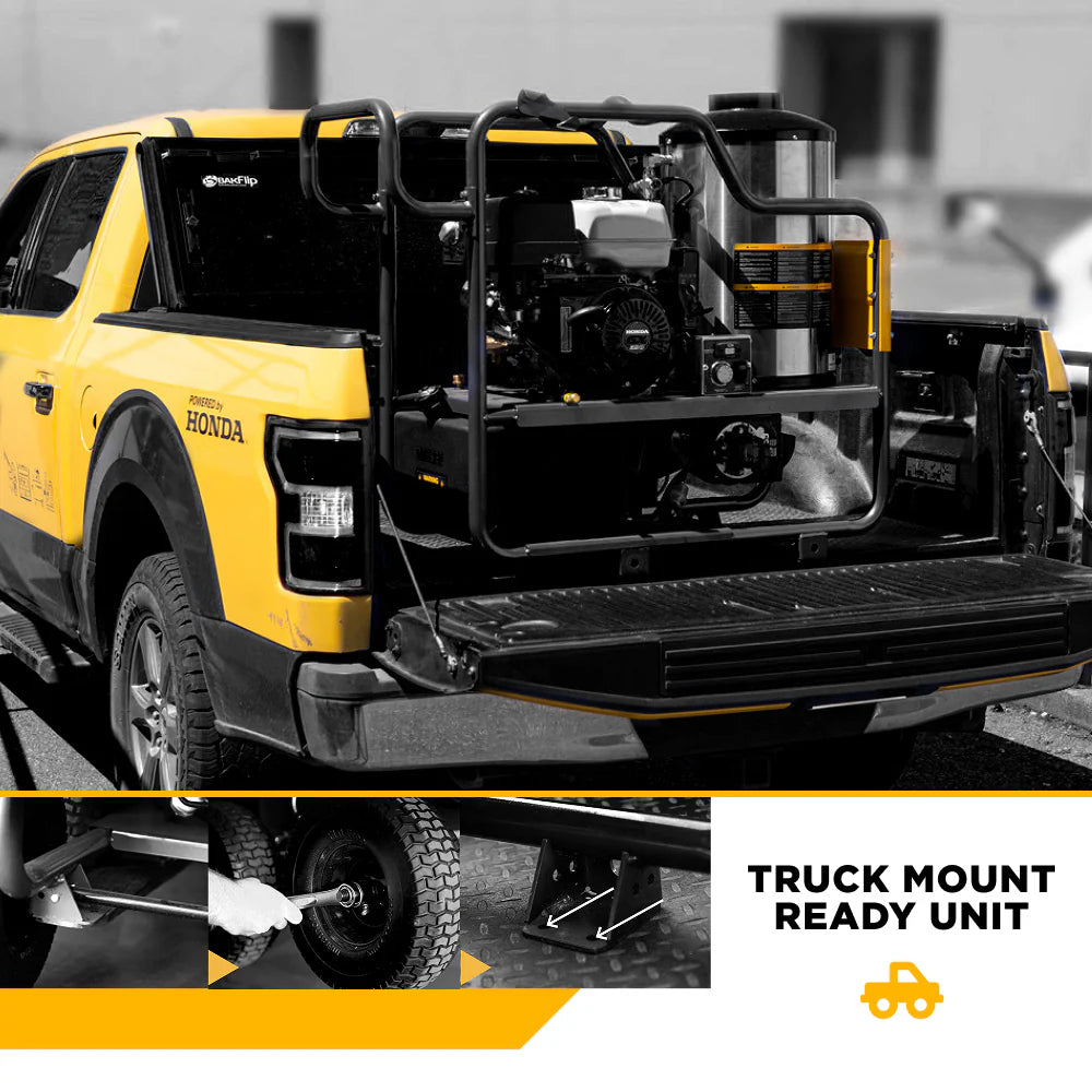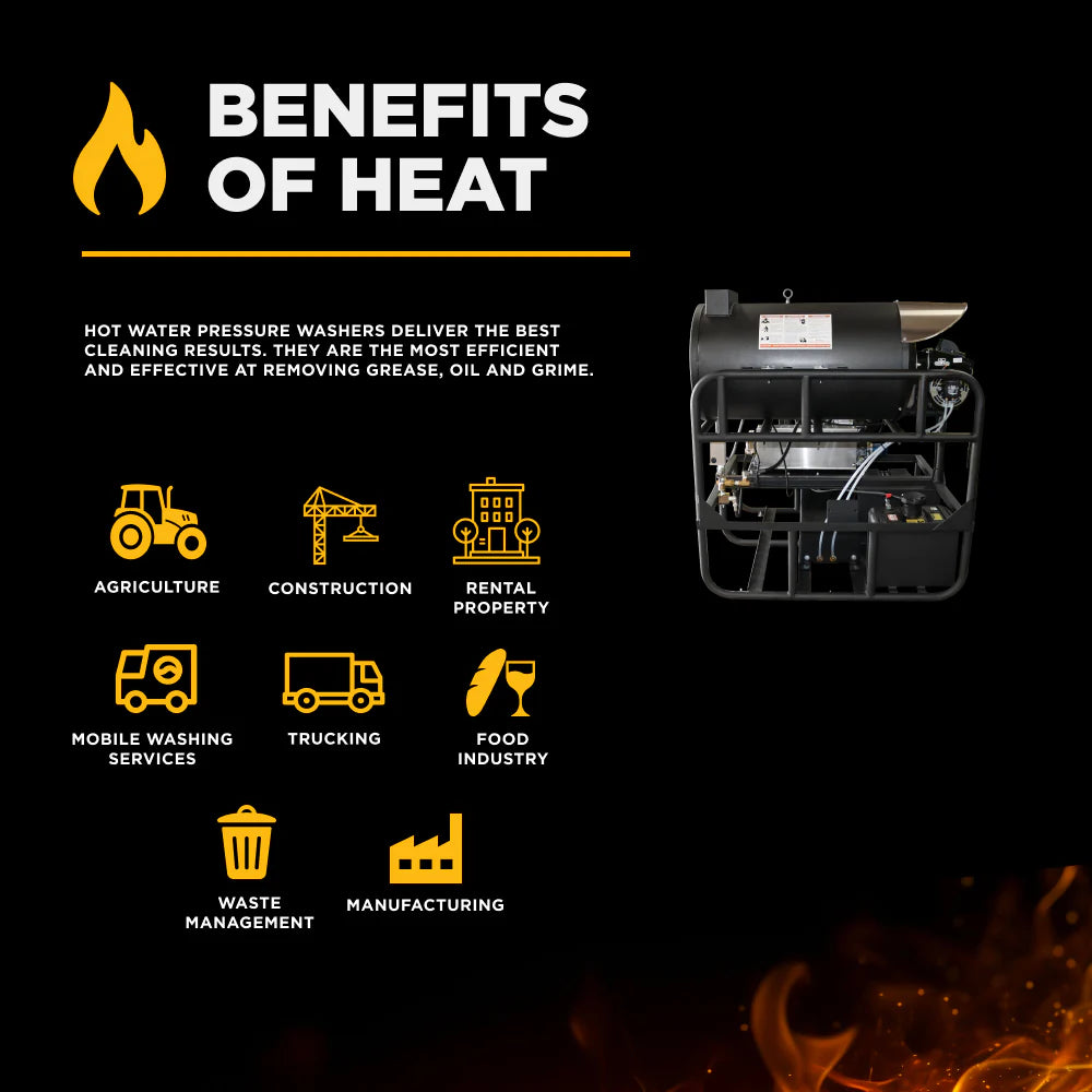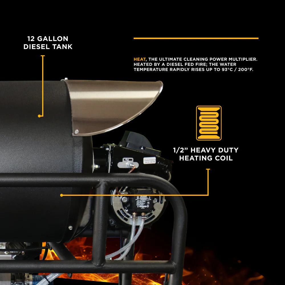 For serious professionals who need to clean smarter, faster and hotter — the SE5815HIHZGP is the hot water skid for you.