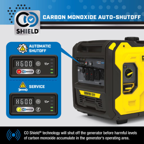 CO Shield® technology monitors the accumulation of carbon monoxide (CO), a poisonous gas produced by engine exhaust when the generator is running. If CO Shield® detects unsafe elevated levels of CO gas, it automatically shuts off the engine. CO Shield® is not a substitute for an indoor carbon monoxide alarm or for safe operation. DO NOT allow engine exhaust fumes to enter a confined area through windows, doors, vents or other openings. Generators must ALWAYS be used outdoors, far away from occupied buildings with engine exhaust pointed away from people and buildings. Meets the requirements of ANSI/PGMA G300-2018.