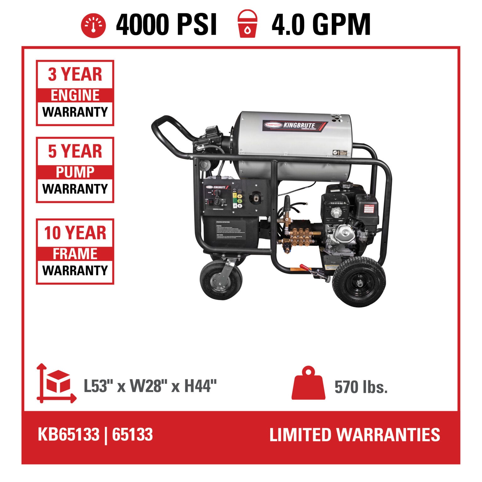 SIMPSON King Brute KB65133 4000 PSI at 4.0 GPM HONDA® with General Pump® Industrial Triplex Pump Hot Water Professional Gas Pressure Washer- PowerGen USA