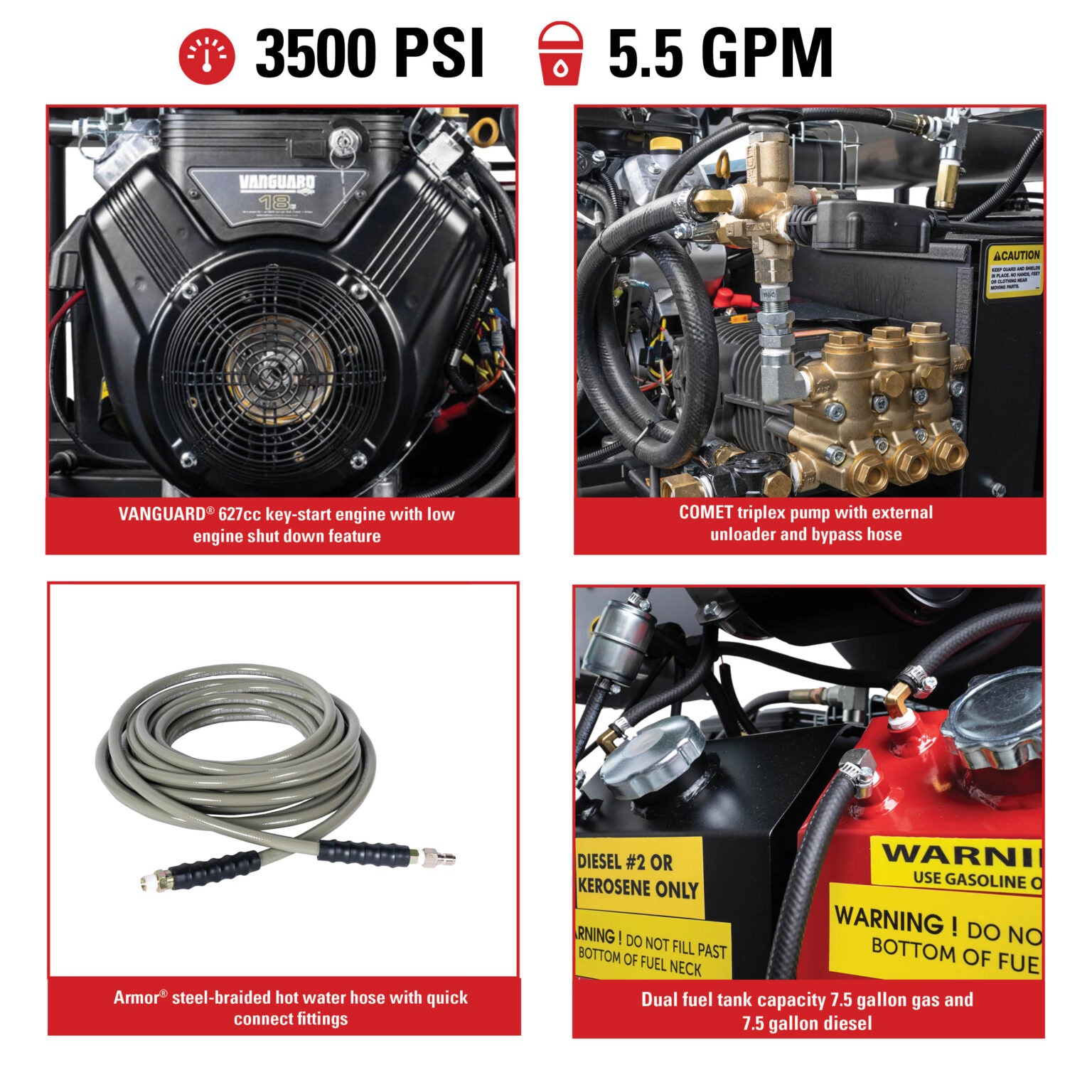 SIMPSON Super Brute SB3555 3500 PSI at 5.5 GPM VANGUARD® 627cc with COMET Triplex Plunger Pump Hot Water Professional Gas Pressure Washer-PowerGen USA